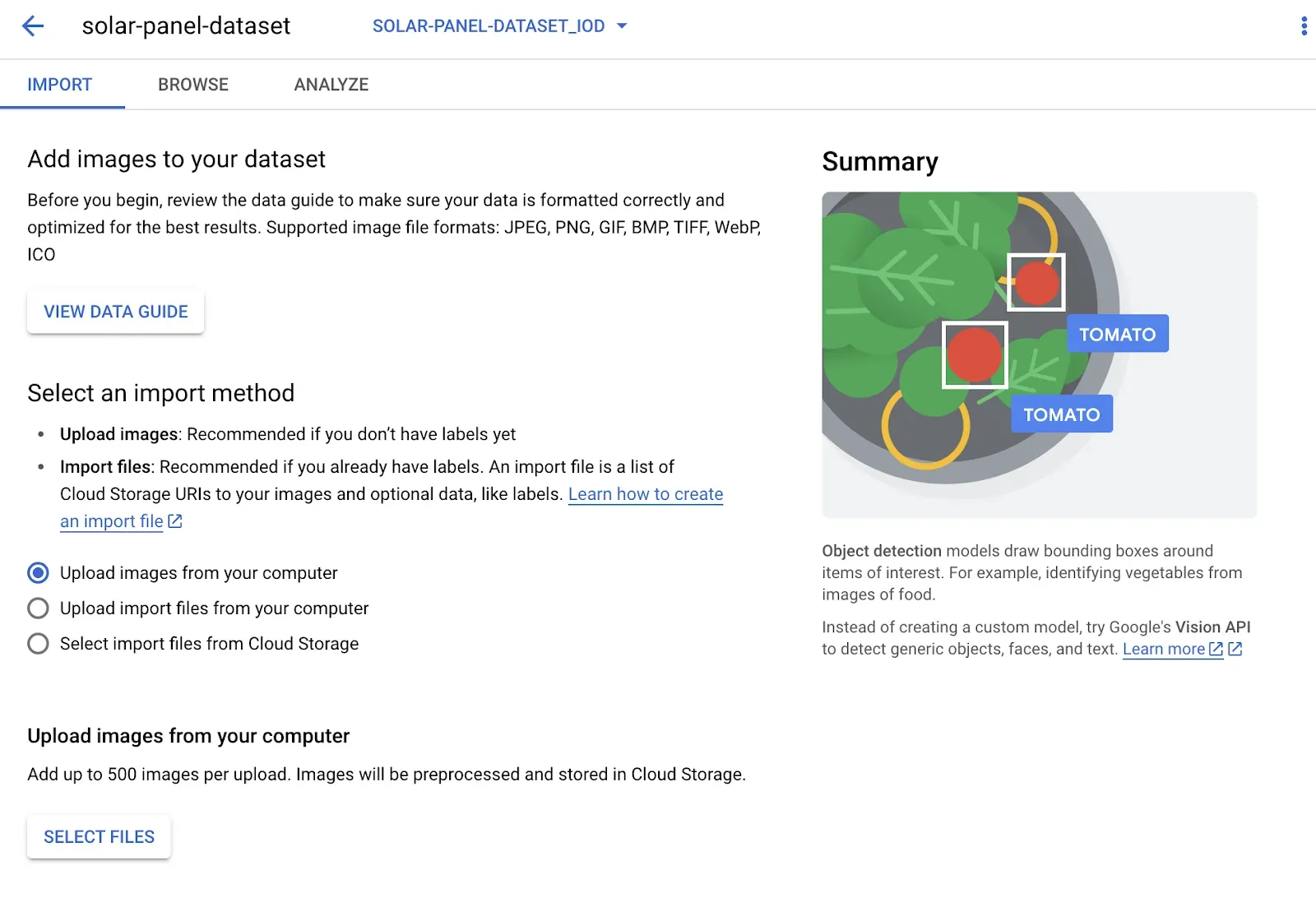 Vertex has labeling solutions for object detection, classification, and segmentation. For this guide, we will focus on labeling data for use in an object detection project.