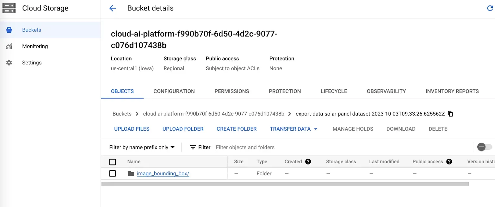 When you confirm the upload, your files will be uploaded into your Vertex AI dataset. The amount of time this process takes will vary depending on the number of images you have uploaded. Keep the page open. You can navigate to another tab to do something else while you wait for the upload. You will receive an email from GCP when your Dataset is ready for use.