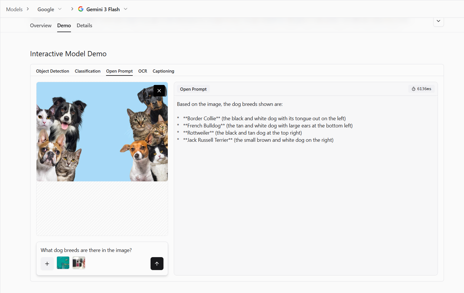 - Image captioning and description: Generate detailed narratives about what appears in an image