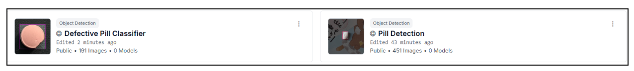 - Pill Detection: 451 images, object detection, 1 class (pill). Already validated by the community (17k views, 595 downloads, 9 stars). This model learns where pills are in the frame.