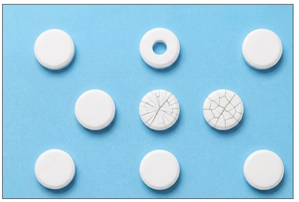 Reduce false rejects by setting a confidence threshold (β₯0.7) on the classification model; below that, route to human review instead of auto-rejecting. Use per-class thresholds tied to defect severity: an edge defect that compromises structural integrity (a chipped tablet that could crumble during packaging) warrants stricter thresholds than a minor cosmetic mark.