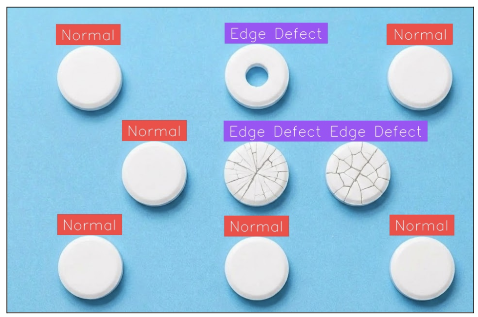 - Defective Pill Classifier: 191 images, 2 classes: Normal and Edge Defect (1.8k views, 69 downloads). This dataset provides the defect classification labels for Stage 2.