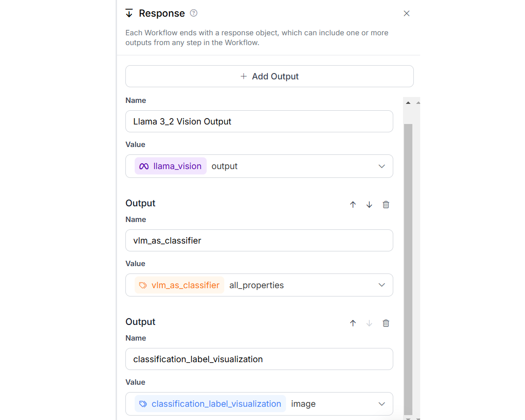 To do this create a new workflow, and add Llama 3.2 Vision, VLM as Classifier and Classification Label Visualization Blocks to it as shown below.