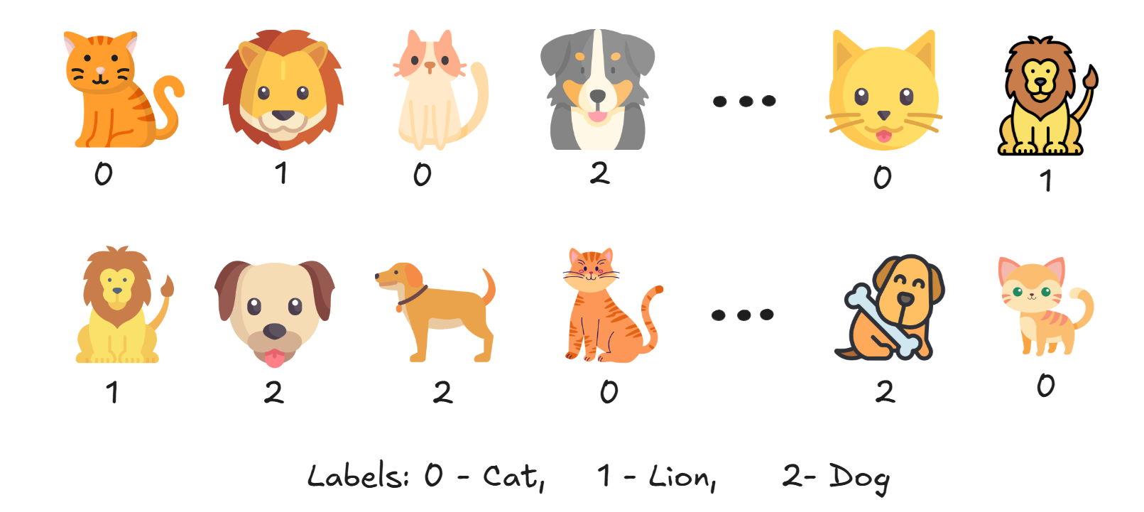 # Ground truth labels (0 = Cat, 1 = Lion, 2 = Dog)