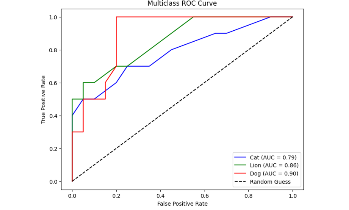 print(f"Class 1 (Lion) AUC: {roc_auc[1]:.2f}")