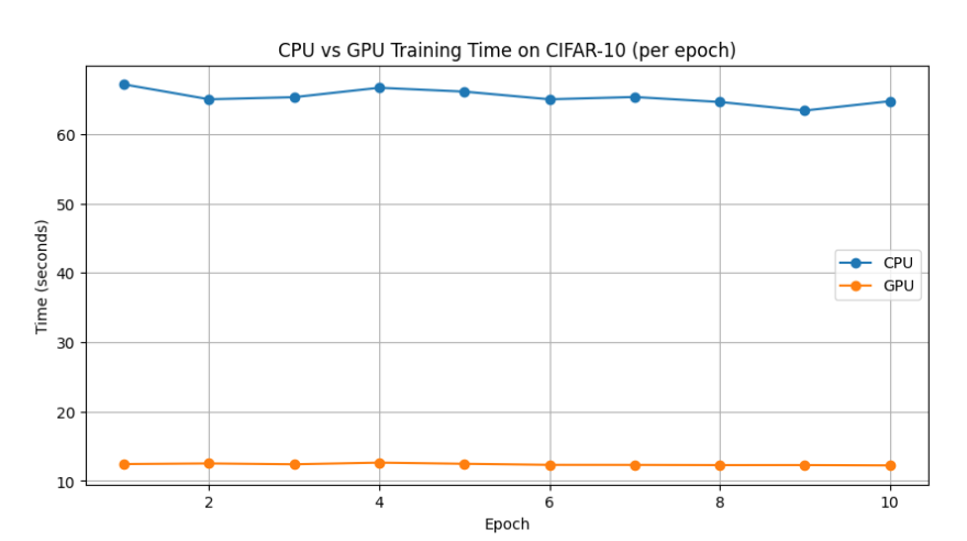 Here’s how CPU vs GPU training time on CIFAR-10: