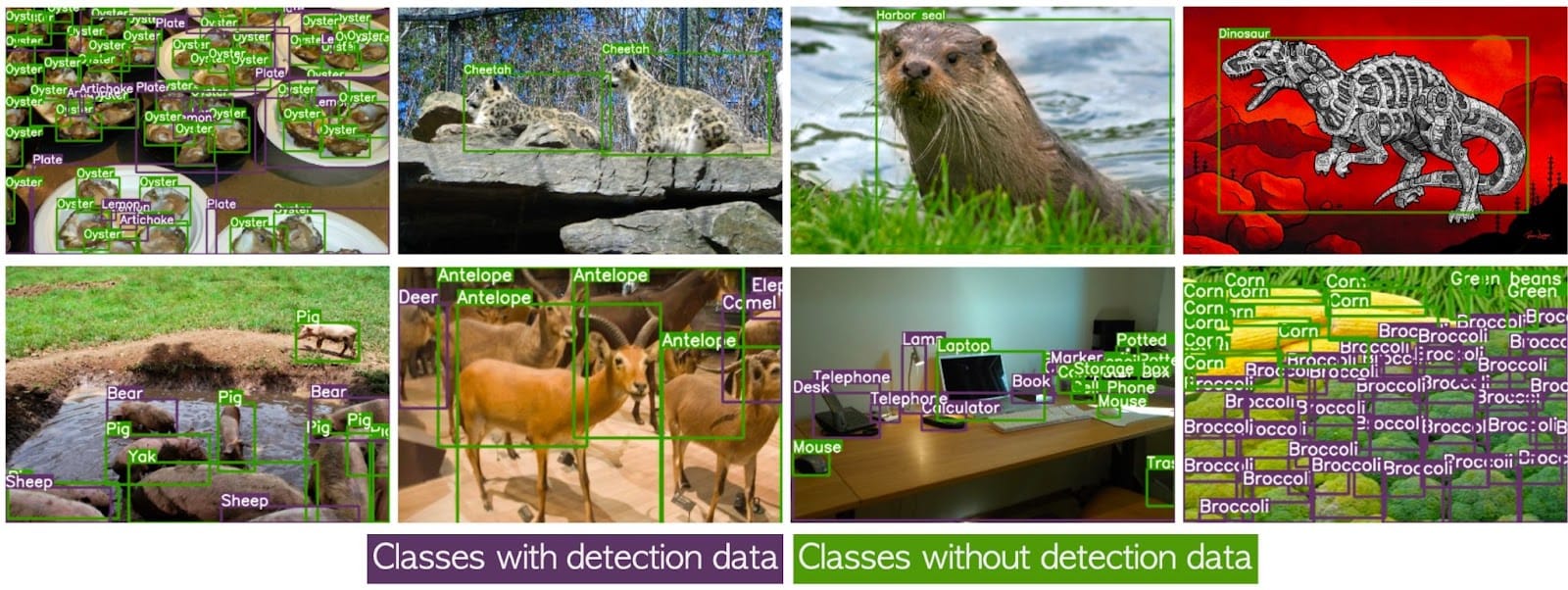 Typically, detection models are trained on specific data tailored to address specific use cases. The result is the model has a limited vocabulary. This is useful in a range of scenarios: models with limited vocabularies are easier to analyze and evaluate, and are more efficient to run on edge devices.