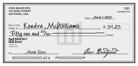 Now that we have reviewed what handwriting recognition can be used for and what options we have for using it, we will go over an example use case: Extracting information from bank checks. We will use an example image.