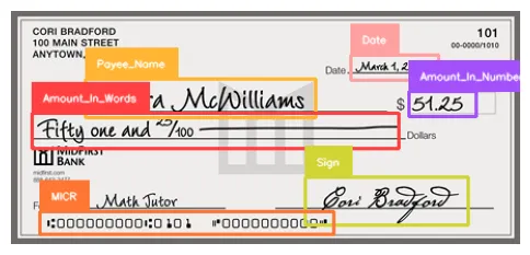 To solve this problem, we use this bank check extraction model and run a prediction on it.