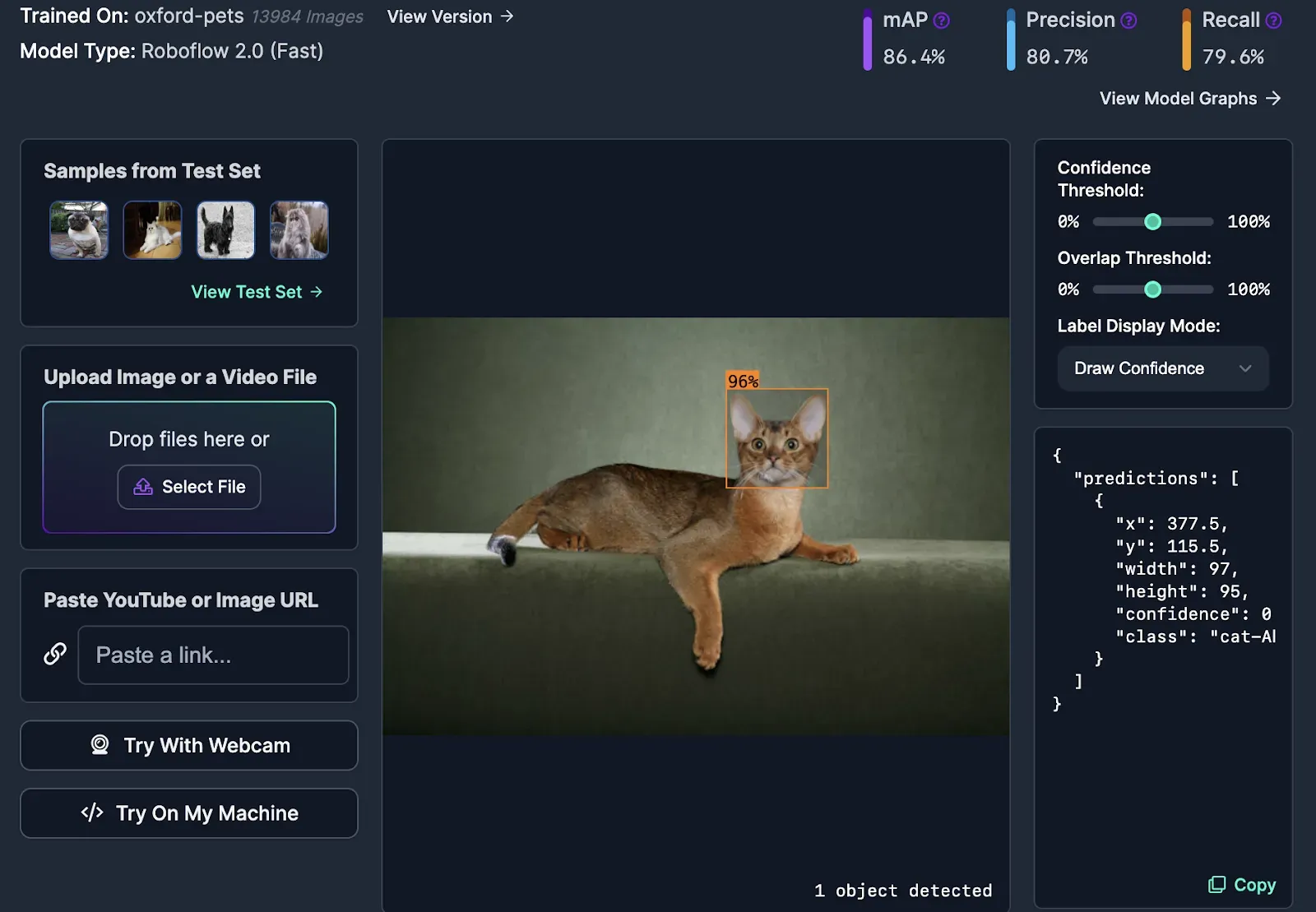 You can use all of the above models in your browser using the interactive Roboflow web interface. You can upload an image to test, use your webcam, or paste an image or video URL. You can also run models on your own hardware, allowing you to deploy models to the edge for use in building a vision-enabled application.