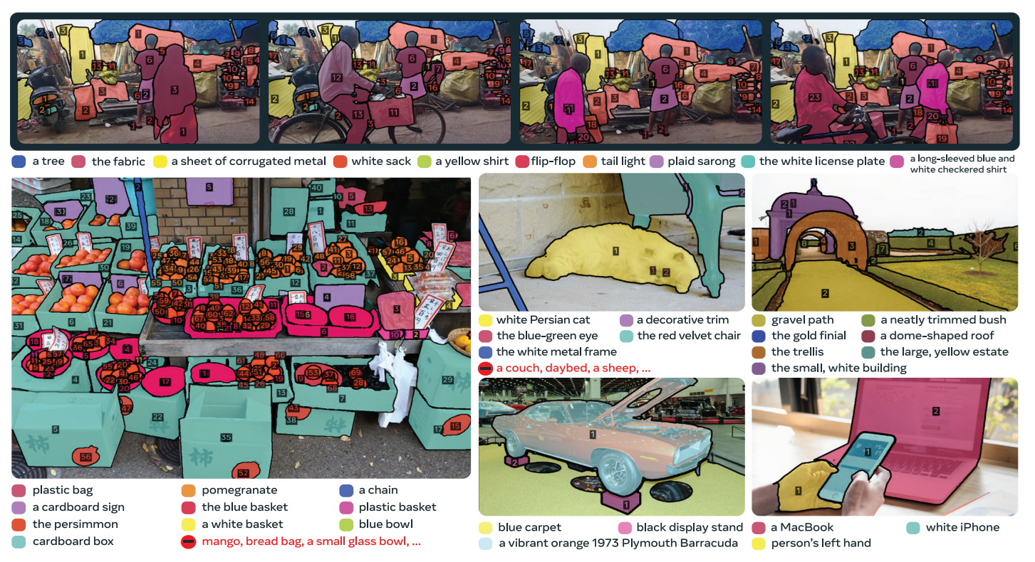 - A large-scale dataset called SA‑Co (Segment Anything with Concepts) covering millions of images, noun-phrases (concepts), and segmentation masks.
