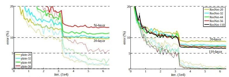 In this section, we are going to show the ResNet-20, -32, -44, -56, and -110 performance compared to plain neural networks.