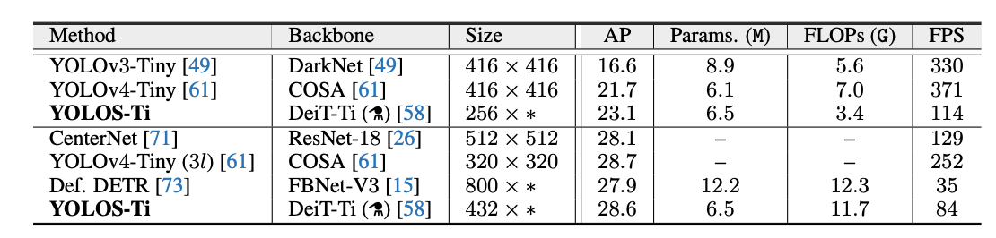 Aside from that fact, the YOLOS network architecture shares nothing else with previous YOLO Models.