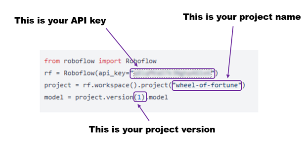 Before you go any further you will need to add your Roboflow API key and project information. This is where the information from the deploy step will be used. This is at the top of the server.py file, at around line 20.