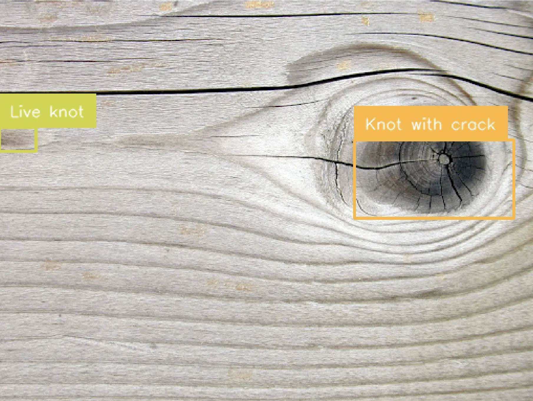 You can then use your model to write custom logic that integrates with your systems. For example, you may send knots with cracks for human inspection. You may reject any piece of wood with more than three knots and use the wood for a different purpose.