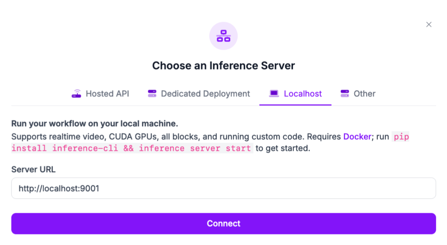 If you are working on your own server, you will need to install Roboflow Inference and open port 9001 to connect to your Inference server, or forward ports as required to ensure the server is accessible.