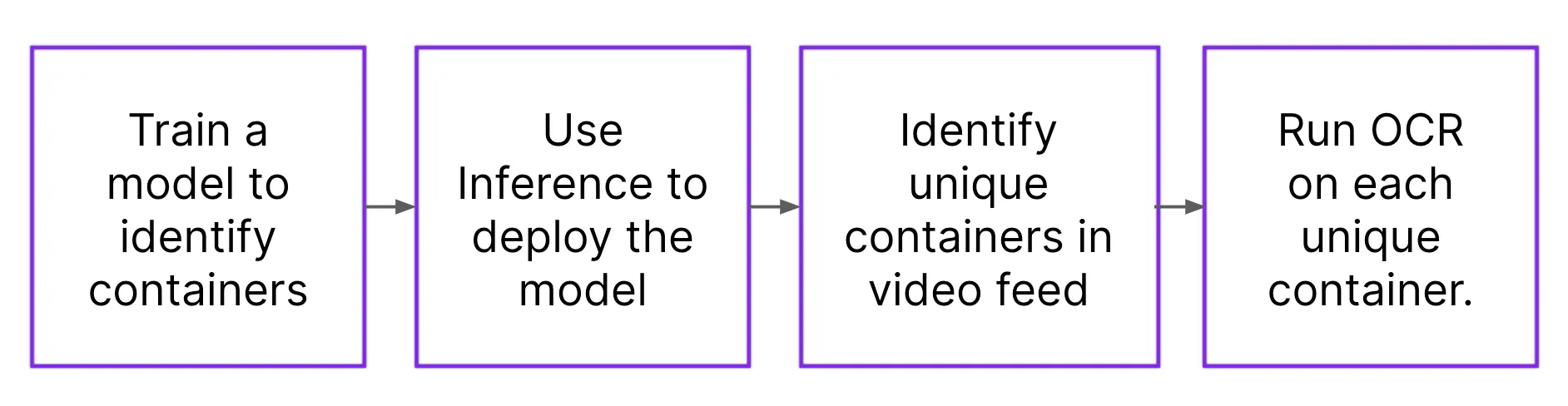 To build this application, we will need to write logic that assigns each container a unique ID number. We can then capture the region of a container in the camera feed and run OCR on that region.
