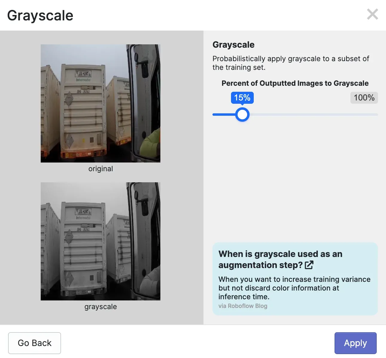 For the best performance, we recommend recording videos in the environment in which you are going to use this vision system. For example, you could use an iPhone to record footage of shipping containers in a yard you manage. You can divide videos into images in Roboflow.