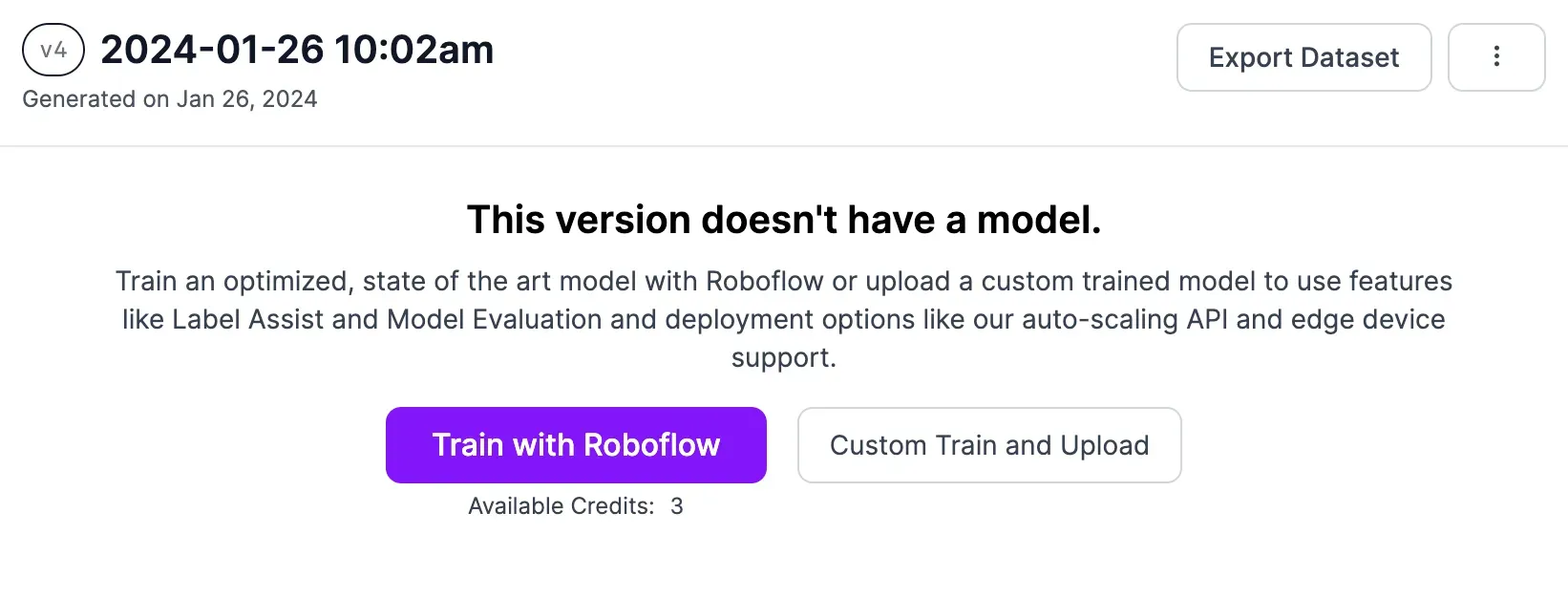 With a dataset version ready, we can train a yard management model. Click the “Train with Roboflow” button on the page to which you were taken after your dataset was generated.