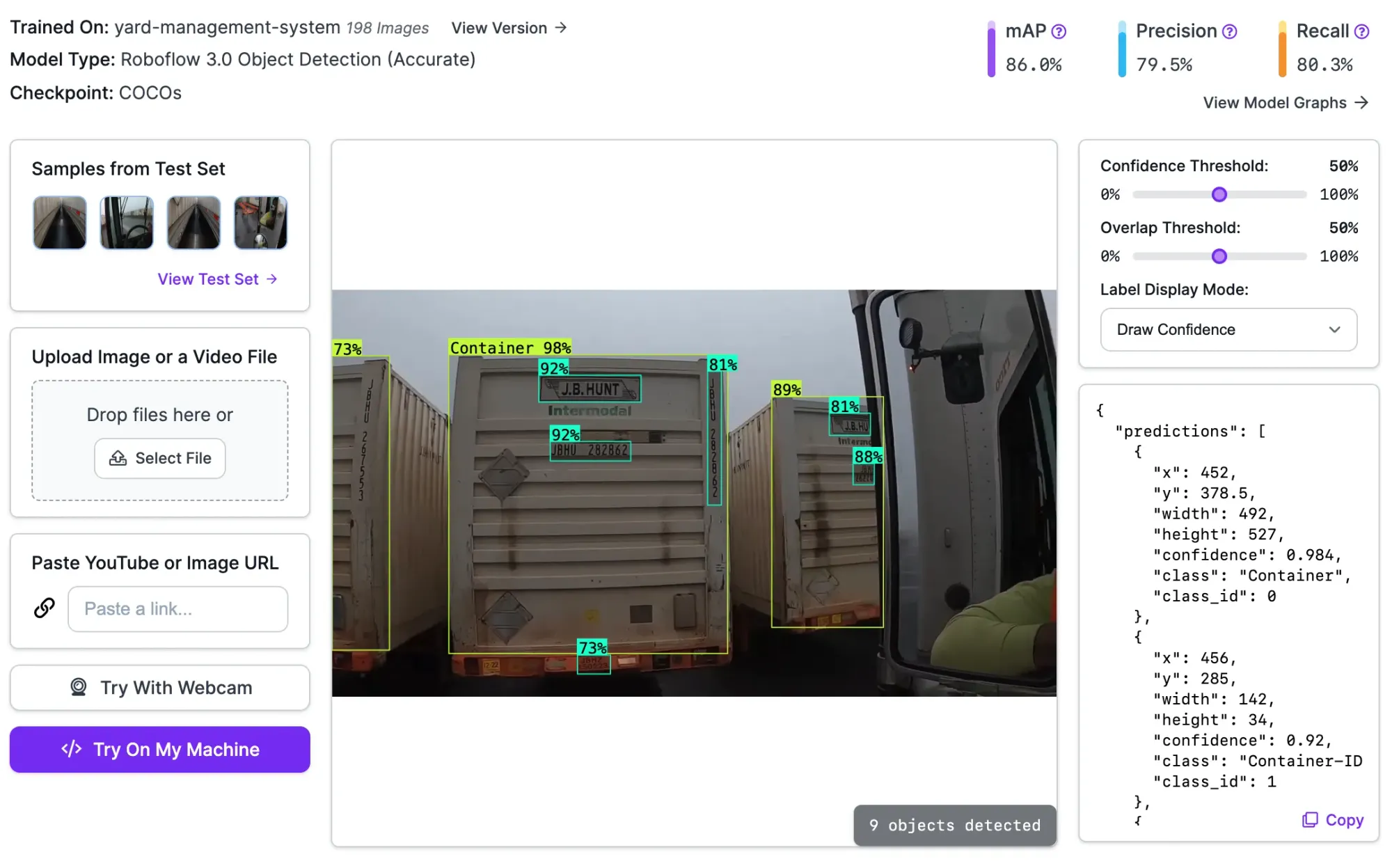 You can use computer vision for yard inventory management. In this guide, we walked through how to build a yard management system with computer vision. We trained a model to identify objects of interest. These included shipping containers, container IDs, and chassis IDs.