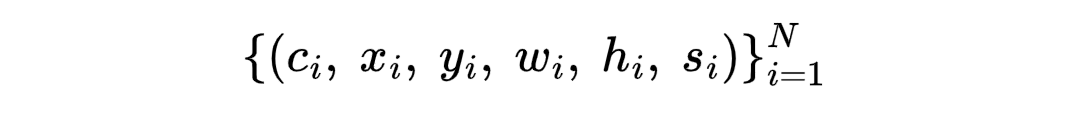 - (xi, yi, wi, hi) defines the position (center x, y) and size (width, height) of the bounding box,
