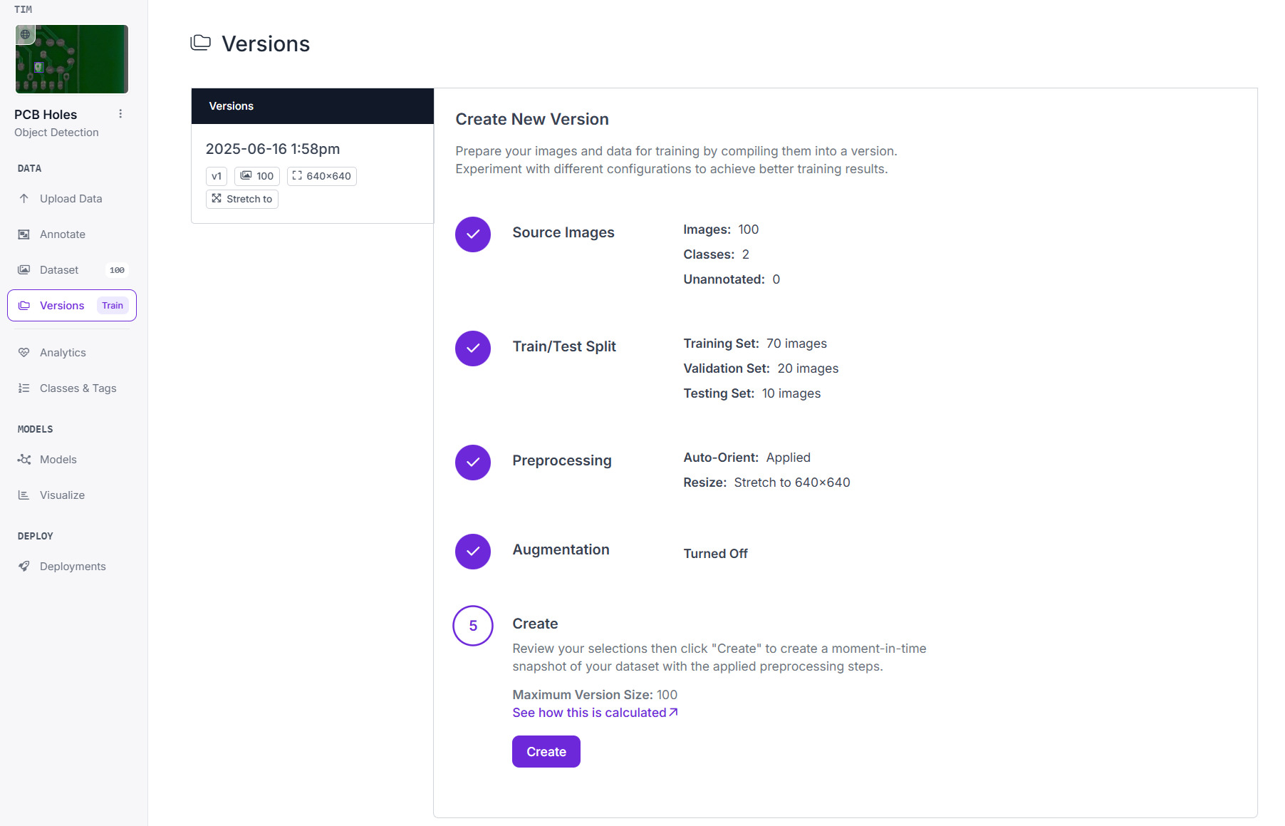Step #2: Upload and annotate your images in Roboflow. In this example, we will train an object detection model to identify manufacturing defects by detecting holes on printed circuit boards (PCBs).