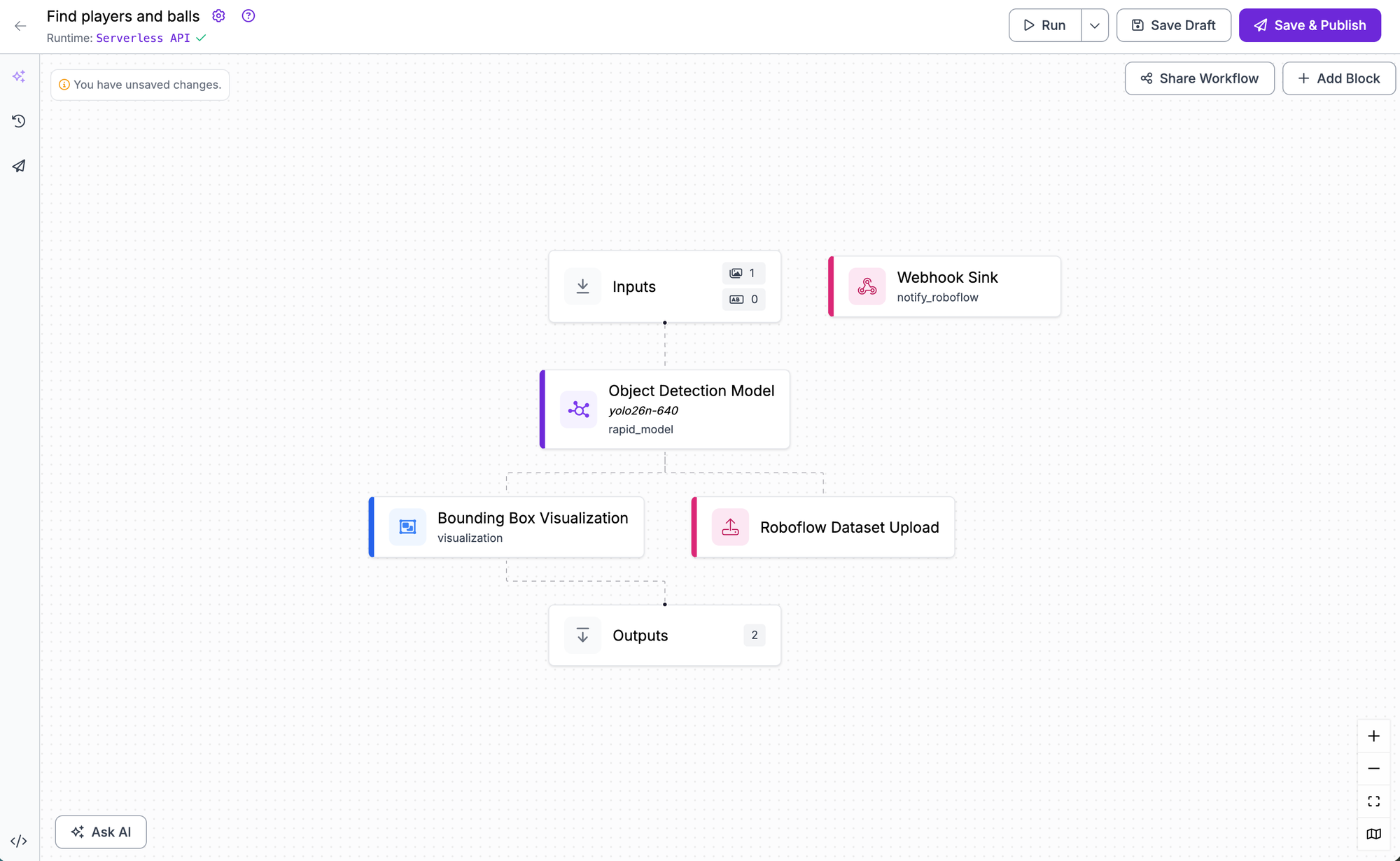 YOLO26 is also fully integrated into Roboflow Workflows, our web-based application builder. You can use YOLO26 as the detection step in complex, multi-stage computer vision pipelines and combine the model with logic, other models (like CLIP or SAM), and third-party integrations.