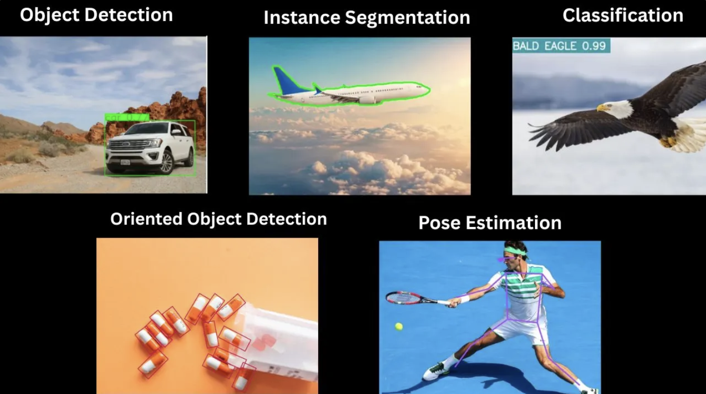 YOLO models are a family of real-time computer vision models designed to handle a wide range of tasks, including object detection, segmentation, pose estimation, classification, and oriented object detection.