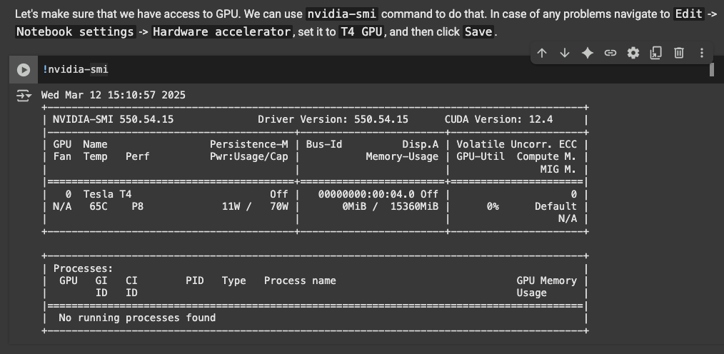 The next step is to use the T4 GPU in colab, because running the model requires accelerated hardware. Following these instructions should allow you to include the T4 GPU: