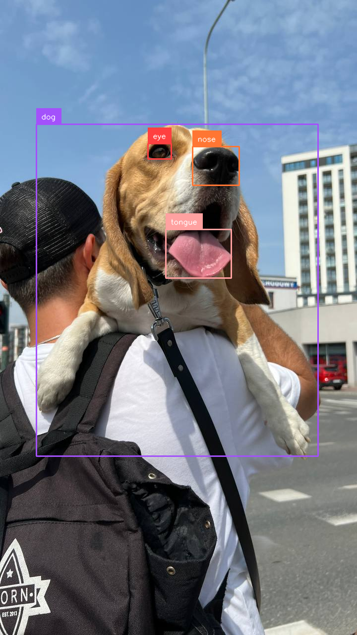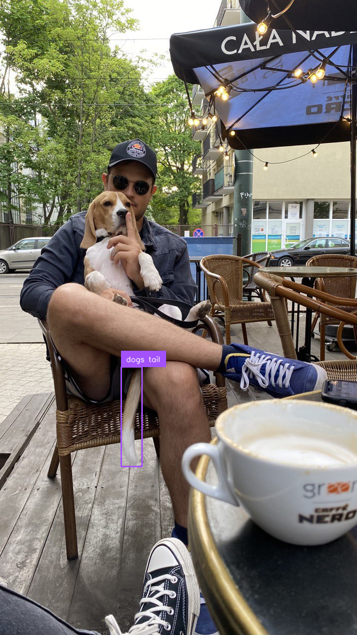 The next snippet is YOLOE detecting the class "dogs tail".
