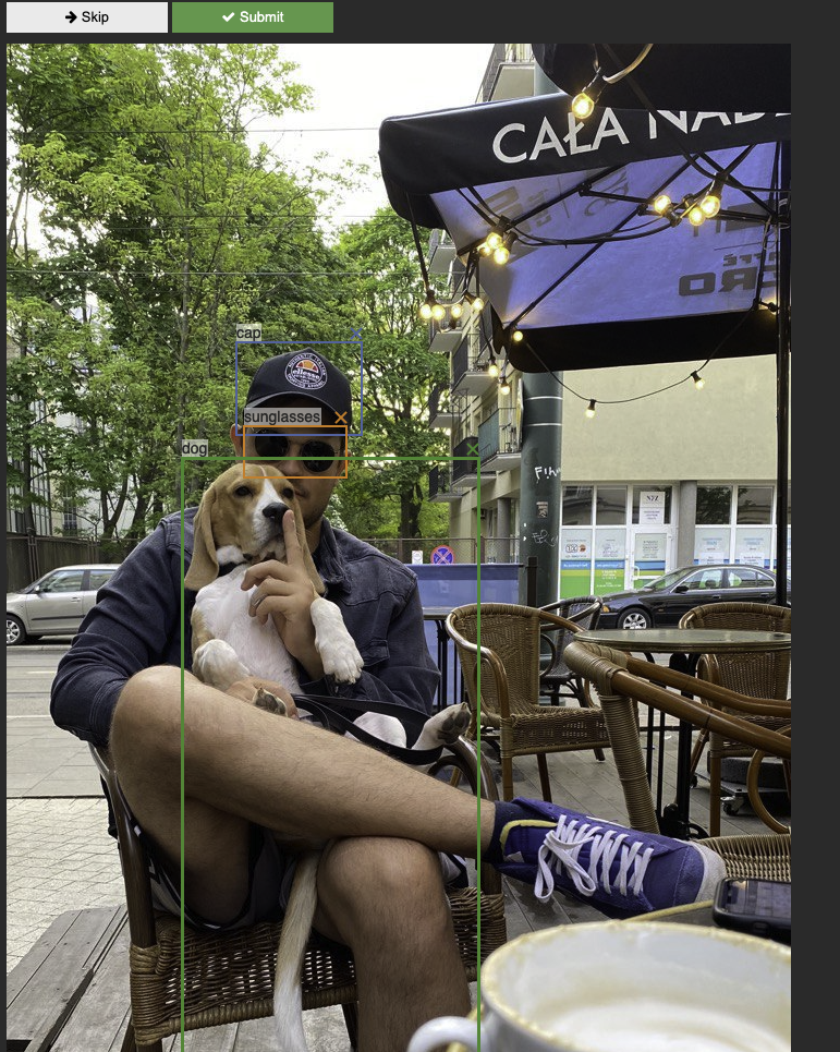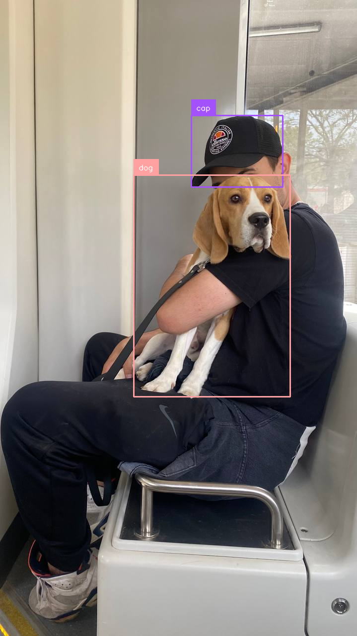 Running the next snippet (using the bounding boxes as a "prompt"), its able to detect, with high accuracy, the bounding boxes for caps and dogs.