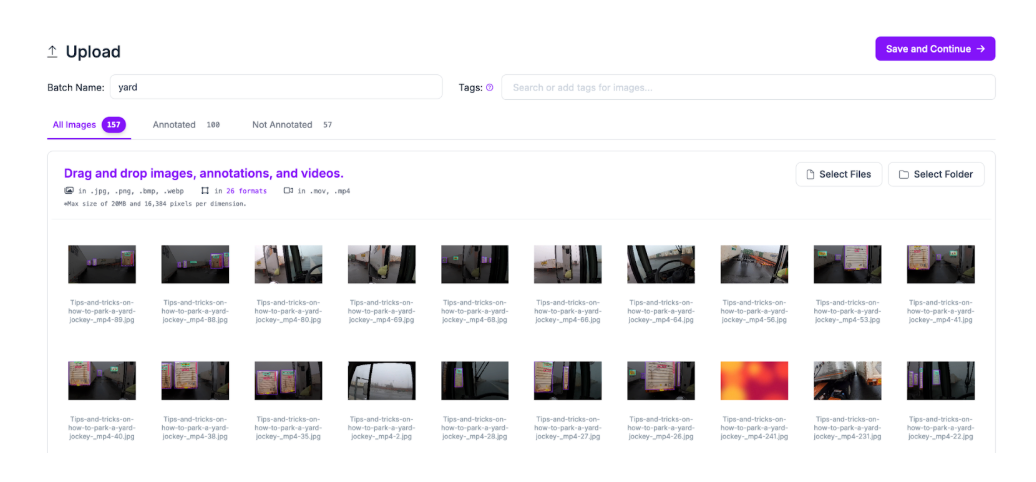 Once you have dragged your images onto the page, click “Save and Continue”. Your images will then be uploaded to Roboflow.