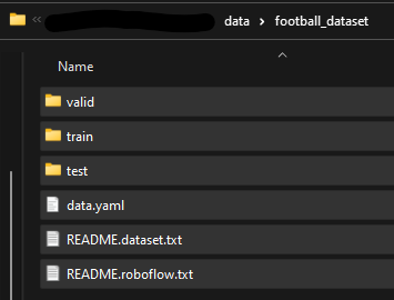 First, under the “data” folder, create a new folder called “football_dataset.” Place the downloaded images and annotations from Roboflow in the “football_dataset” folder.