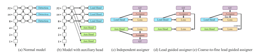 The auxiliary head does not train as efficiently as the final head because there is less network between it an the prediction - so the YOLOv7 authors experiment with different levels of supervision for this head, settling on a coarse-to-fine definition where supervision is passed back from the lead head at different granularities.