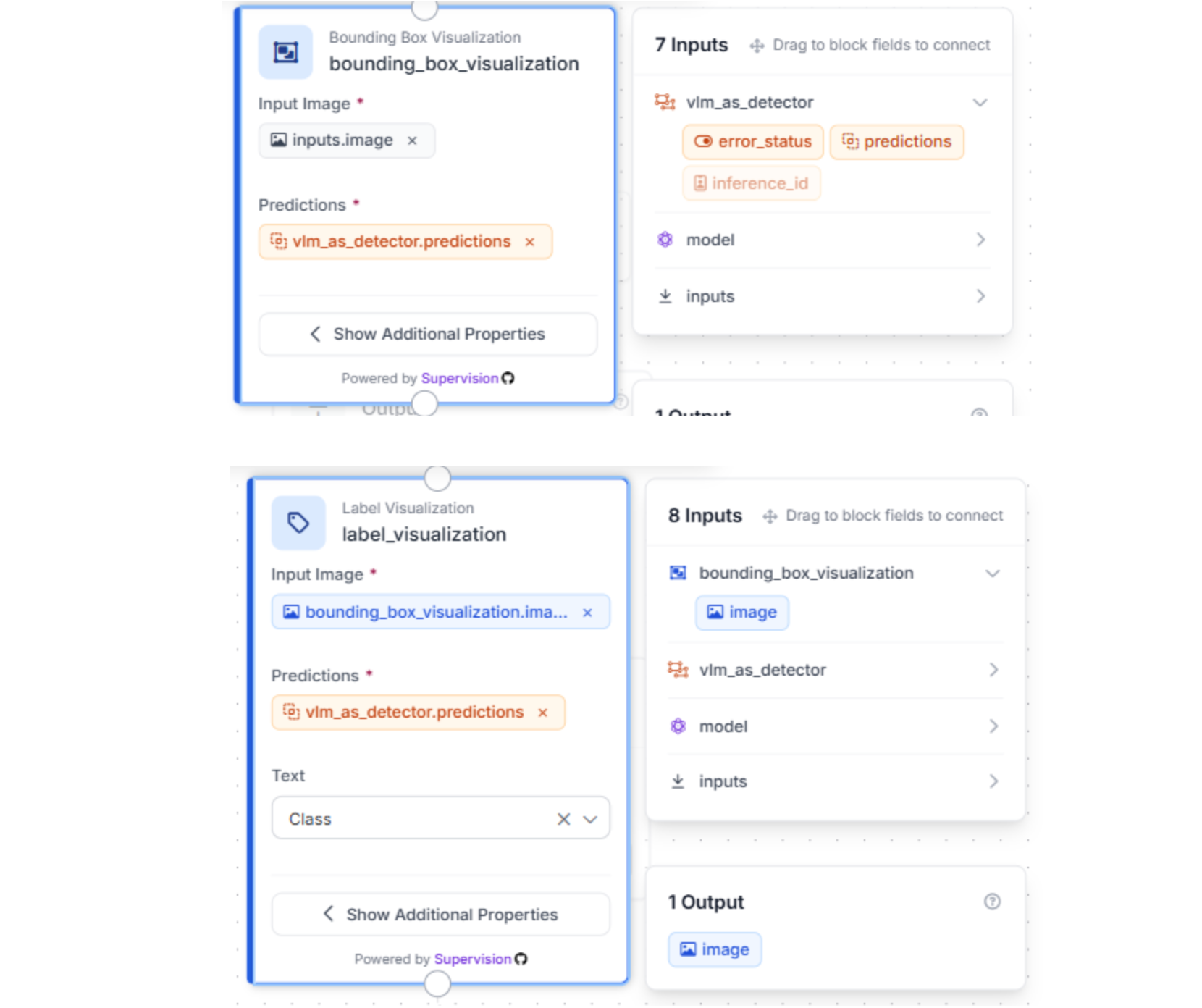 To verify the workflow is performing correctly, use the Bounding Box Visualization and Label Visualization blocks. This overlays the VLM’s predictions onto your images in the Workflow preview.