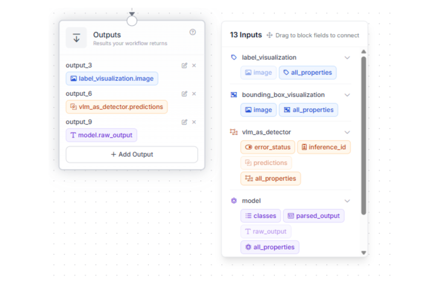 A Note on Naming: By default, Roboflow assigns IDs like “output_6” or “output_9” to these blocks. The Python script provided later in this guide relies on these specific keys to find the image dimensions and bounding box coordinates.