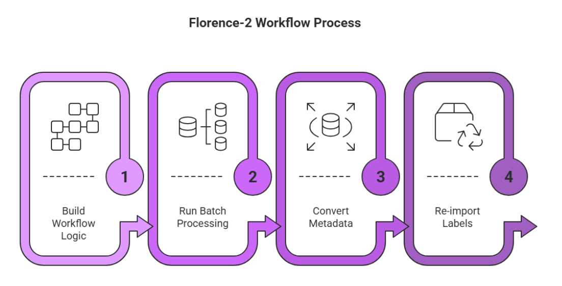 Once your workflow is finalized, you can scale your labeling efforts across your entire dataset using Batch Processing. This allows you to automate the reasoning process of Florence-2 across thousands of images simultaneously.