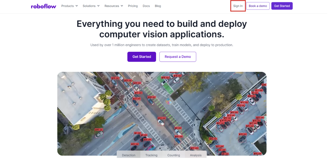 Ensure you have a workspace set up for your automotive projects. Navigate to Roboflow and sign in. If you don’t have an account, sign up for free.