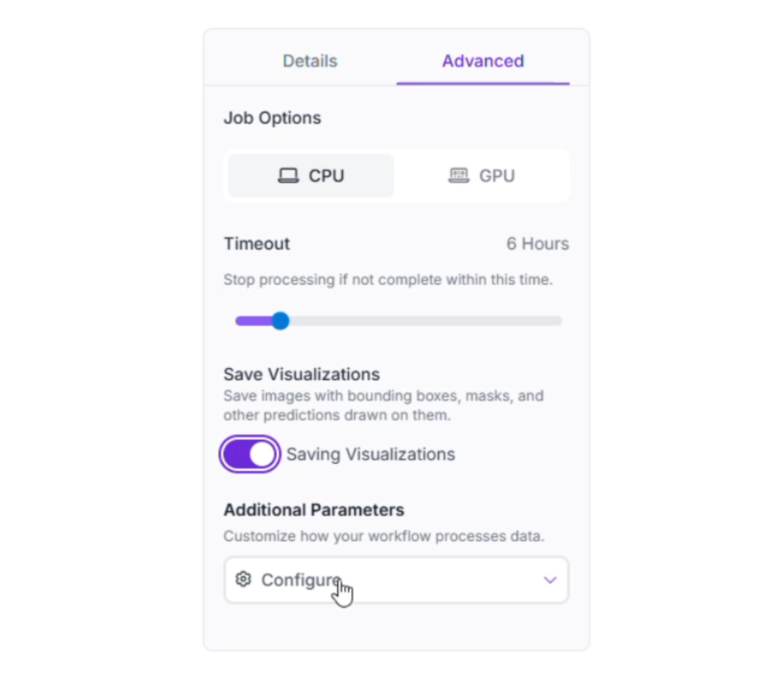 - Visualizations: Enable the Save Visualizations toggle. This is a crucial step for the "human-in-the-loop" phase, as it allows you to quickly verify that the VLM's bounding boxes are accurate before you proceed to training.