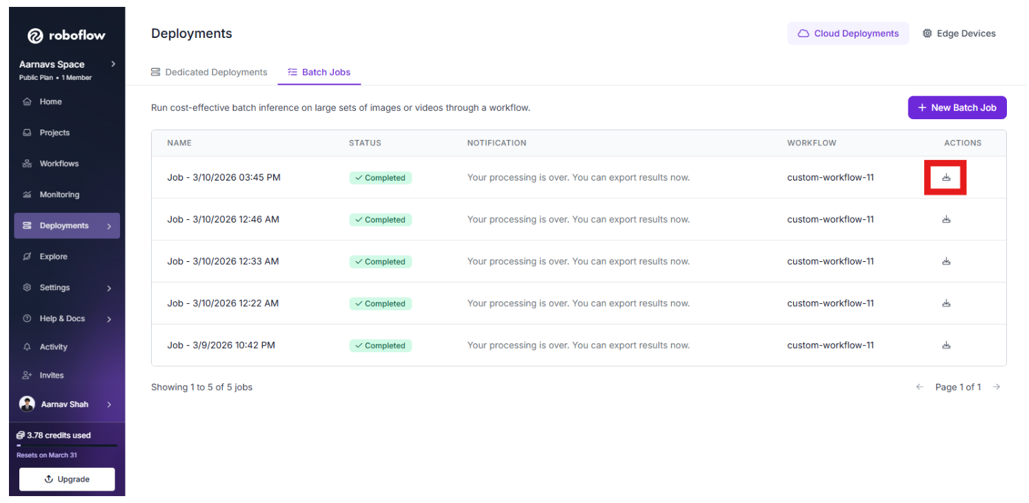 - Once your Florence-2 job is finished (this might take some time), select it and click the Download button.